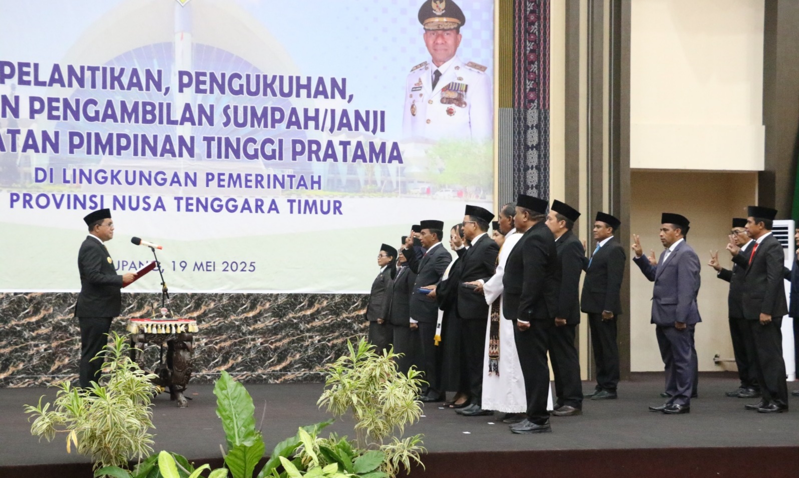 Gubernur NTT, Melki Laka Lena, melantik 15 Pejabat Eselon II Lingkup Pemprov NTT, Senin 19 Mei 2025.